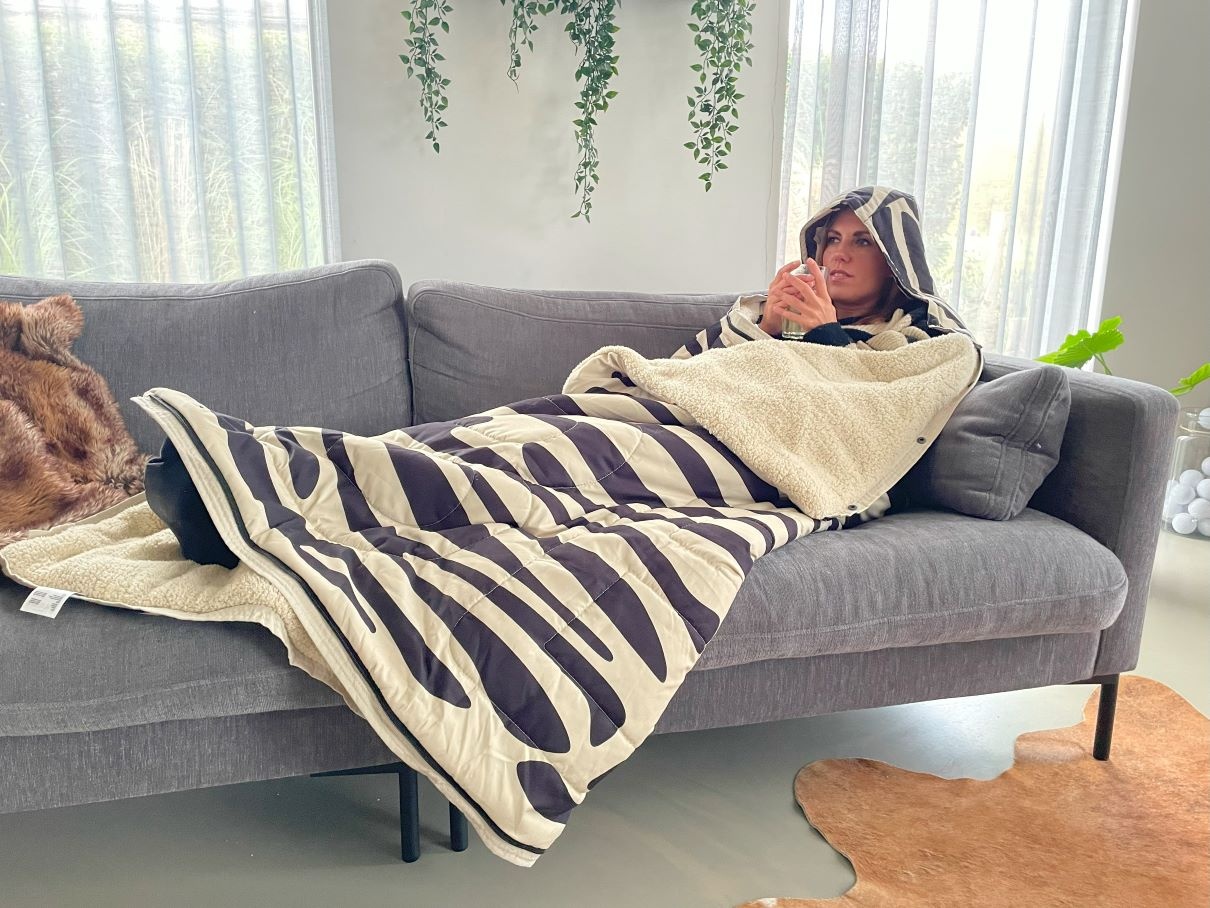 Heerlijke deken: Open de rits en geniet van een donzige deken van 200 x 160 cm – perfect om te delen of om jezelf extra warmte te geven