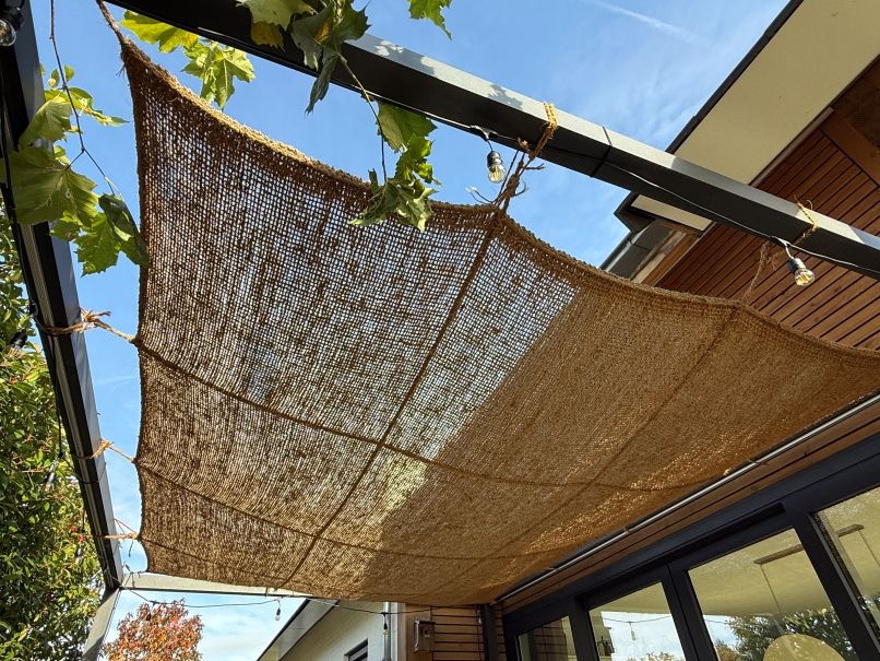 De montage van deze speciale doeken, gemaakt van natuurlijke vezels, is anders dan die van onze gewone schaduwdoeken. Ze zijn meer vatbaar voor de weersinvloeden.